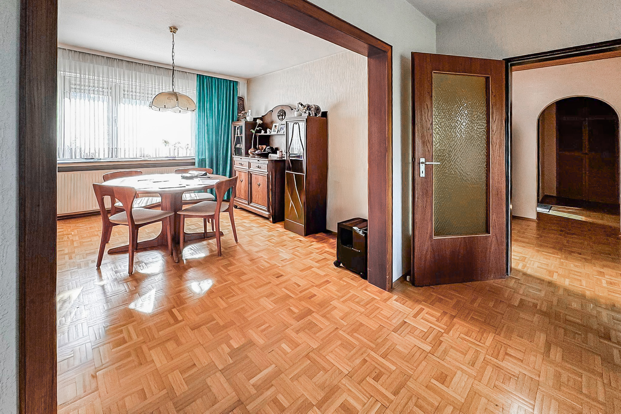 Das Objekt eignet sich sowohl zur Nutzung als Zweifamilienhaus als auch zur Umnutzung in ein Einfamilienhaus.