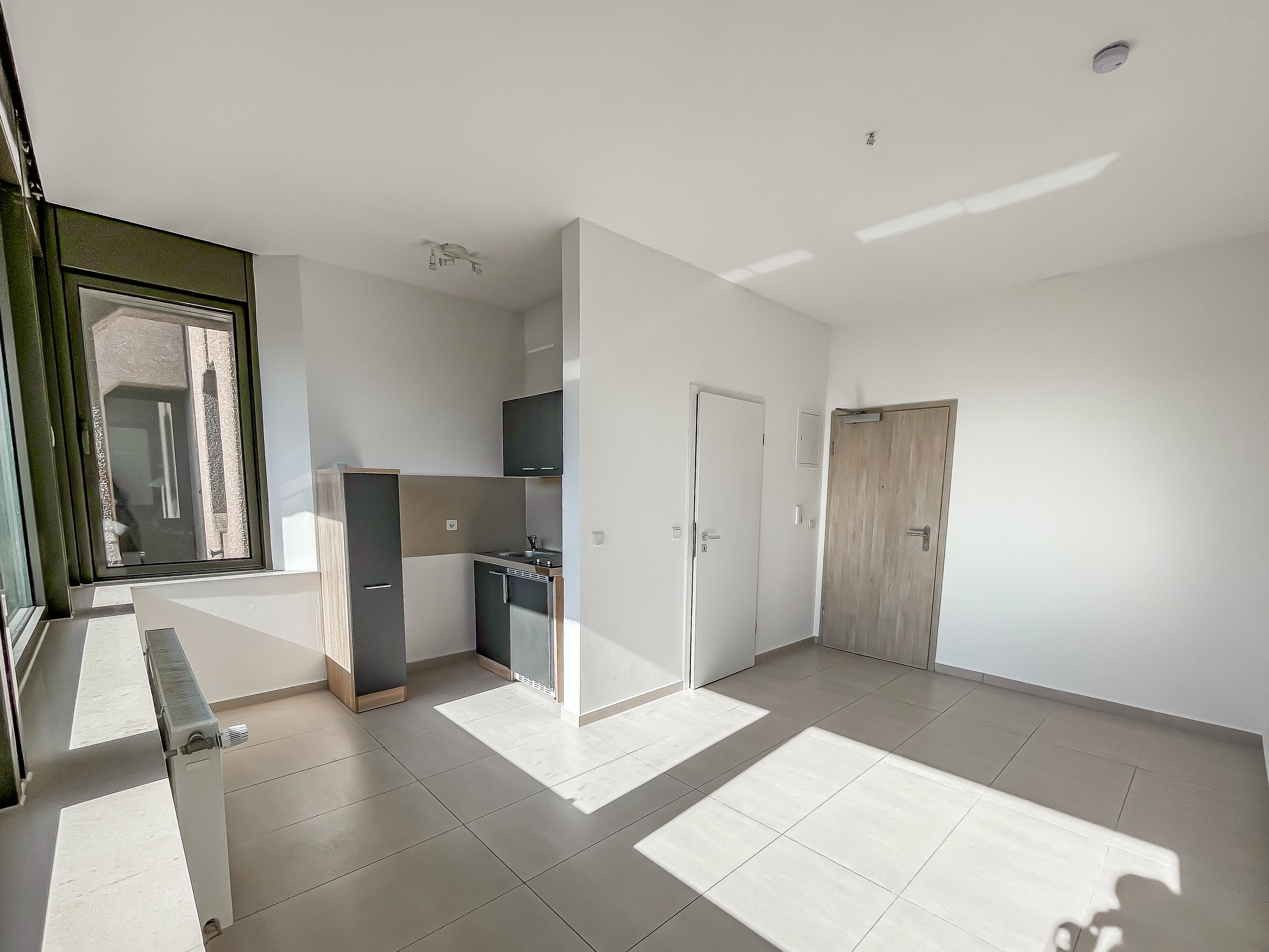 Die frisch renovierte 1,5-Zimmer-Wohnung (Nummer 40) liegt im 3. OG des repräsentativen Gebäudekomplexes