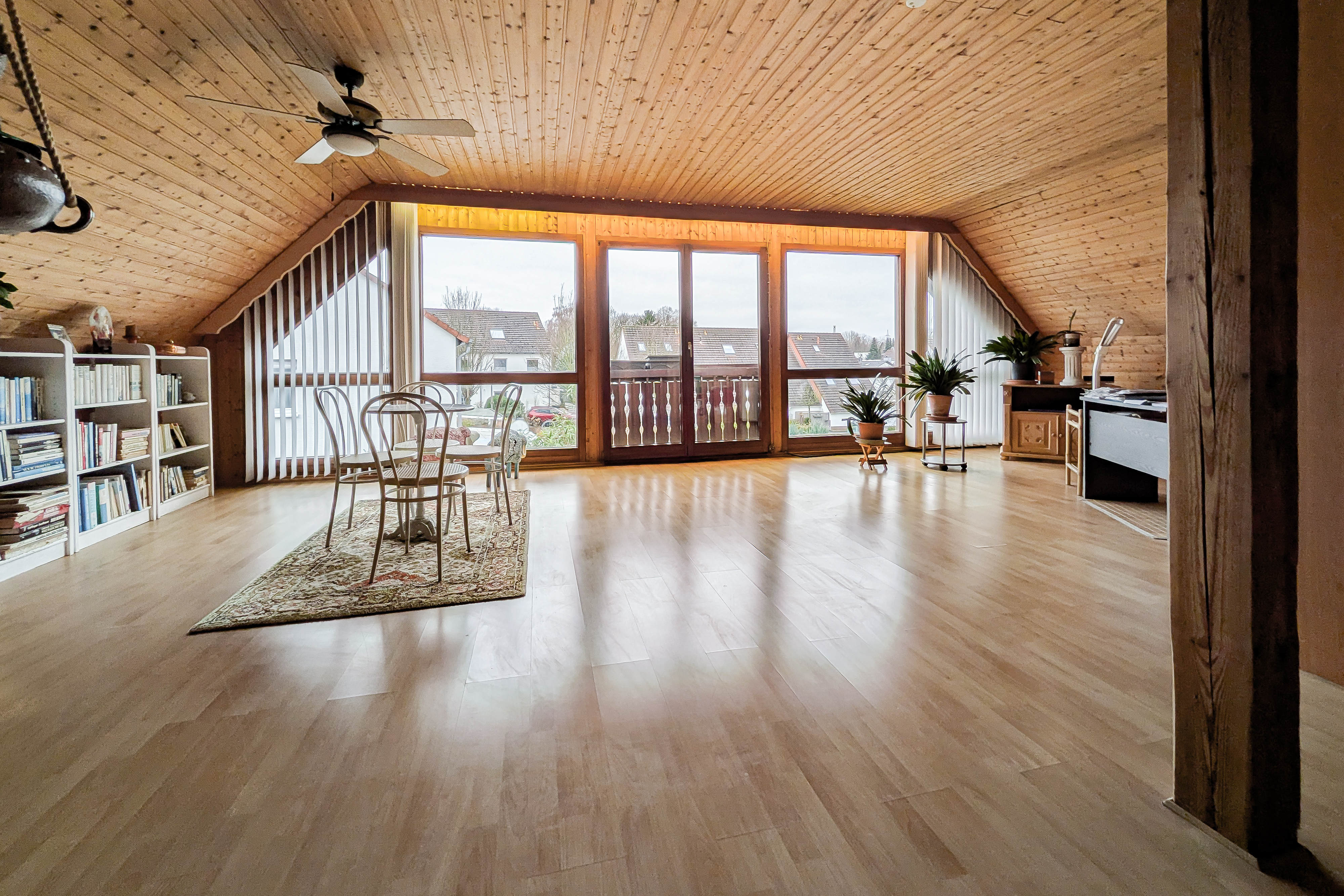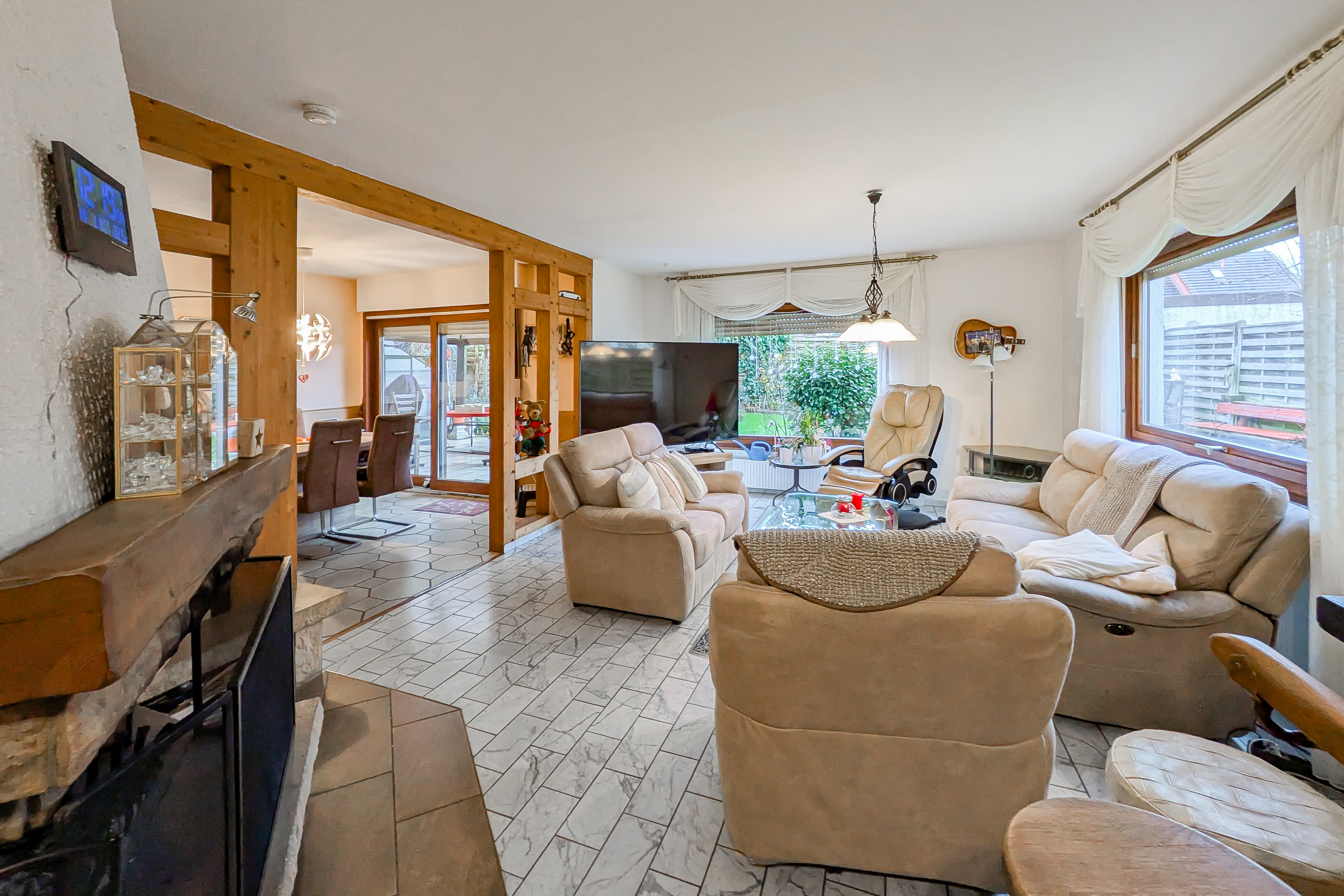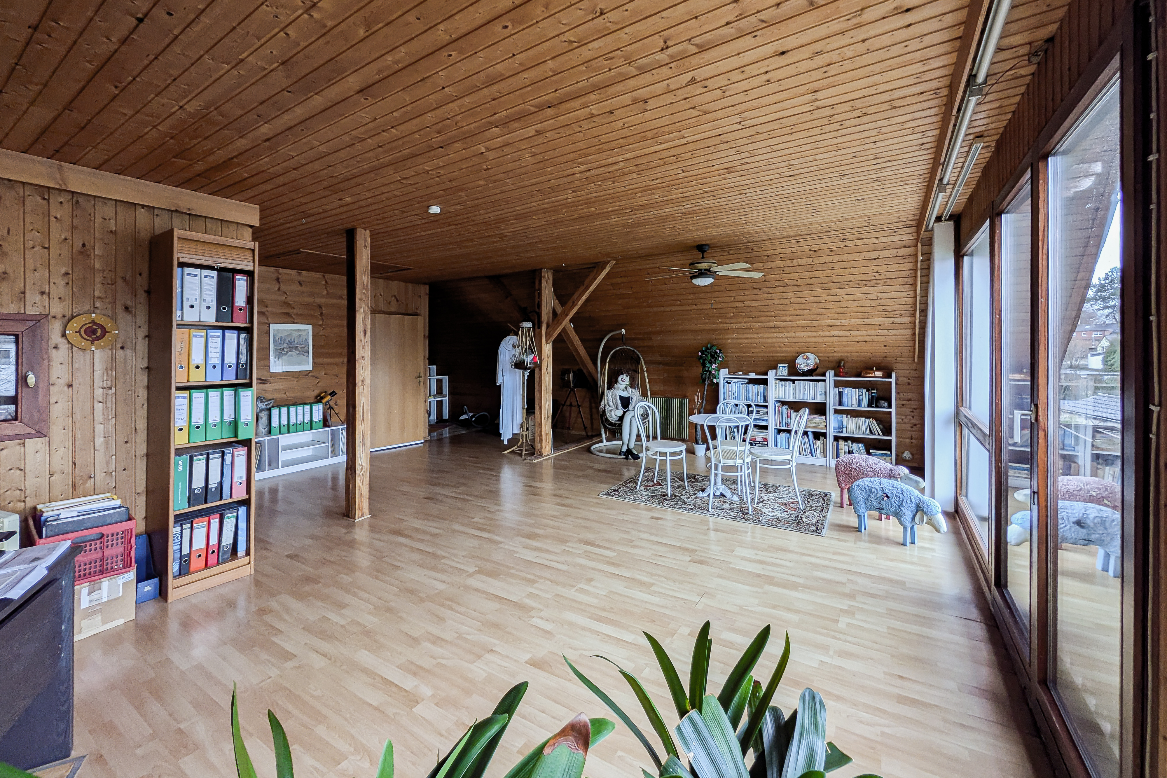 Das freistehende Einfamilienhaus wurde im Jahr 1981 als Fertighaus errichtet und bietet eine bewohnbare Fläche von ca. 230 m², verteilt auf drei Etagen, ergänzt durch eine zusätzliche Kellerfläche von ca. 90 m². Daraus ergibt sich eine großzügige Gesamtfläche von rund 320 m². Insgesamt stehen 6,5 Zimmer zur Verfügung, die durch einen Balkon sowie eine Terrasse sinnvoll ergänzt werden und vielfältige Wohn- und Nutzungsmöglichkeiten bieten. Auf der Vorderseite des Hauses befinden sich eine Garage sowie ein zusätzlicher Stellplatz. Ein besonderes Highlight ist der wohnlich ausgebaute Dachboden, der mit Sauna und Dusche ausgestattet ist. Die großzügige Fensterfront sorgt hier für eine außergewöhnlich helle und angenehme Atmosphäre.