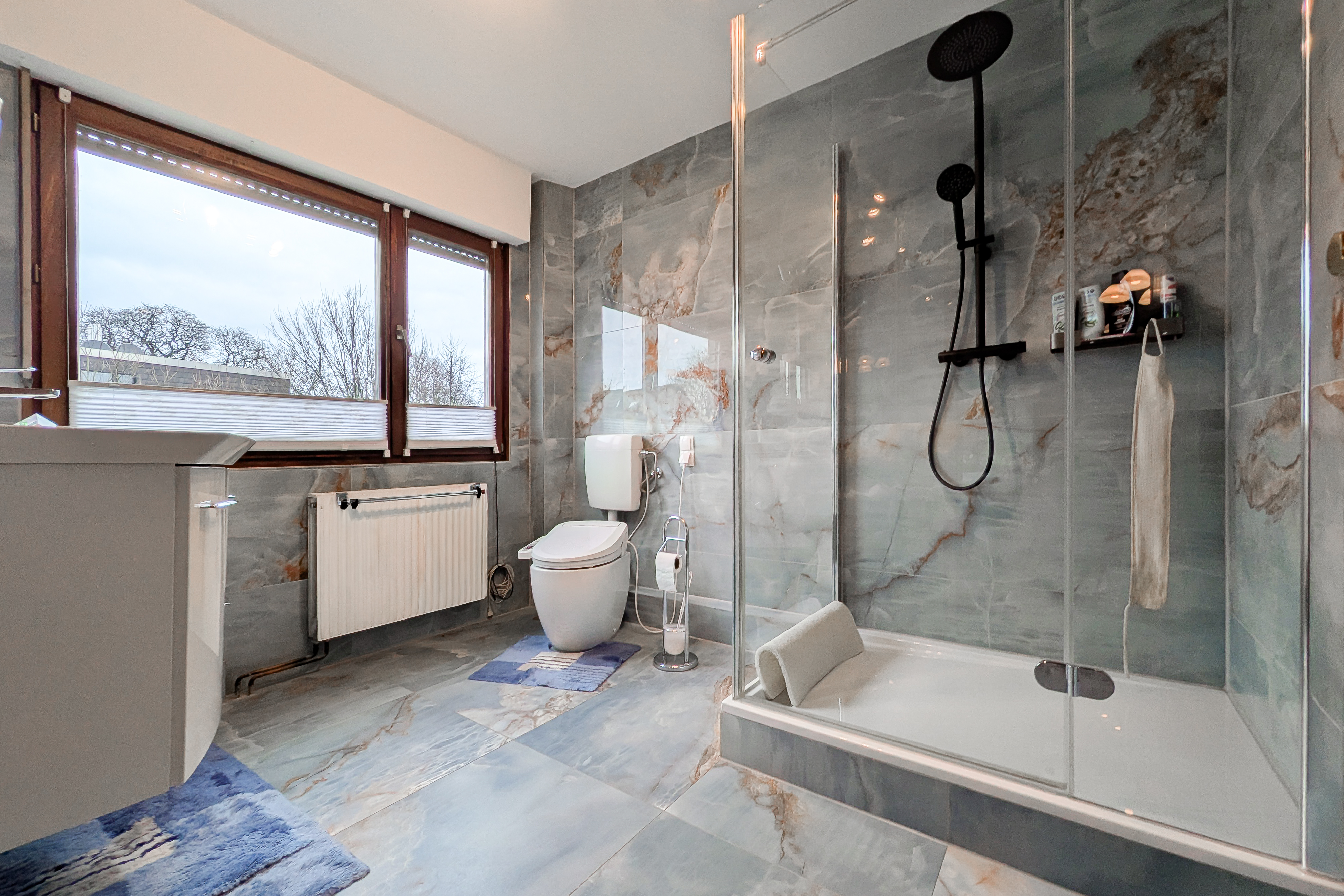 - Ausstattung des Bades Dusche Fenster