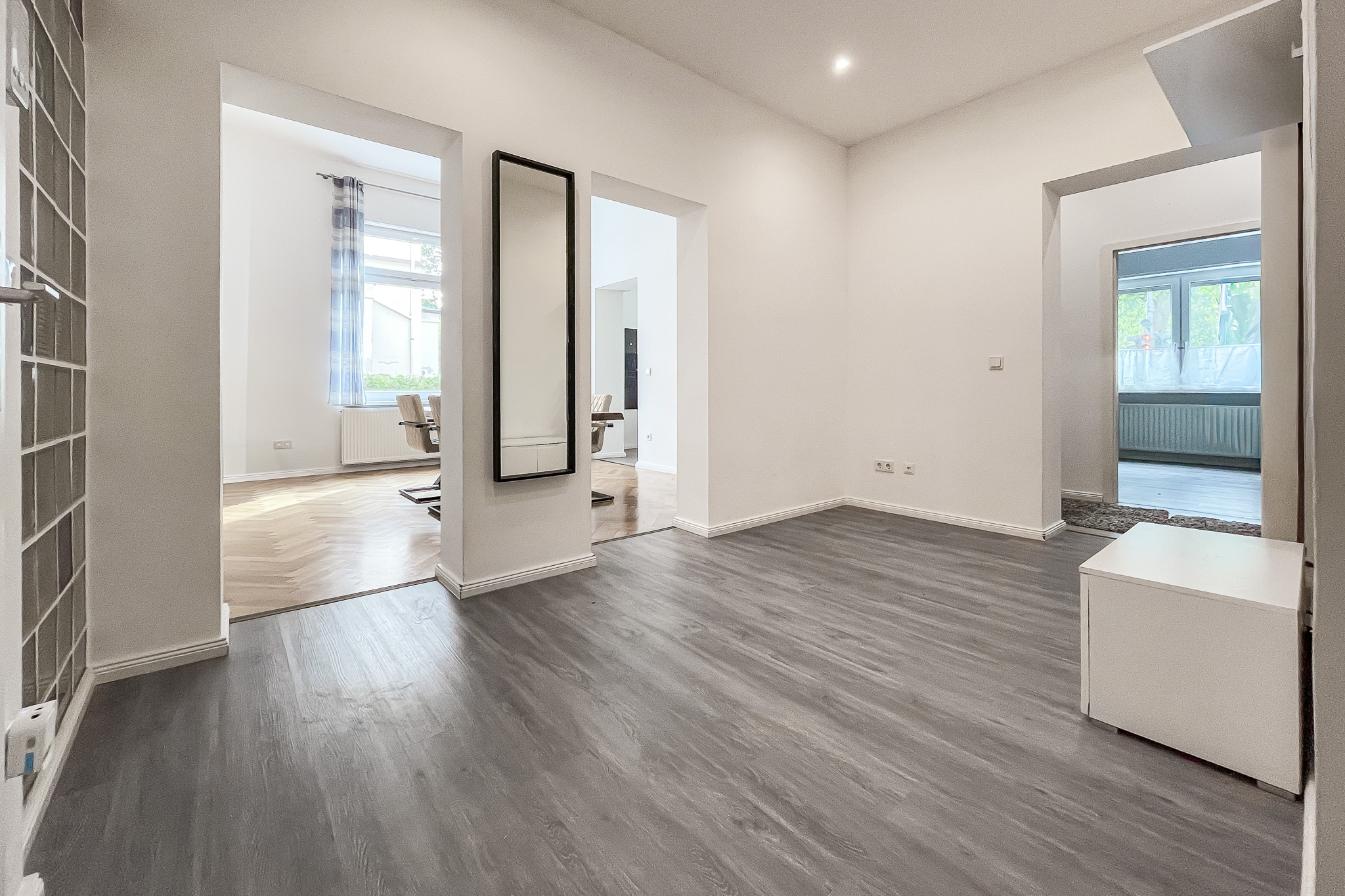 Die großzügige Eigentumswohnung (Aufteilungsplan Nr. 2, inkl. Kellerraum und Kfz-Stellplatz) befindet sich im Erdgeschoss eines im Jahr 1909 erbauten Mehrfamilienhauses mit insgesamt sechs Wohneinheiten. Das Gebäude wurde im Jahr 2017 umfassend und hochwertig kernsaniert – und verbindet damit auf eindrucksvolle Weise den klassischen Charme eines Altbaus mit dem Komfort zeitgemäßer Wohnkultur.