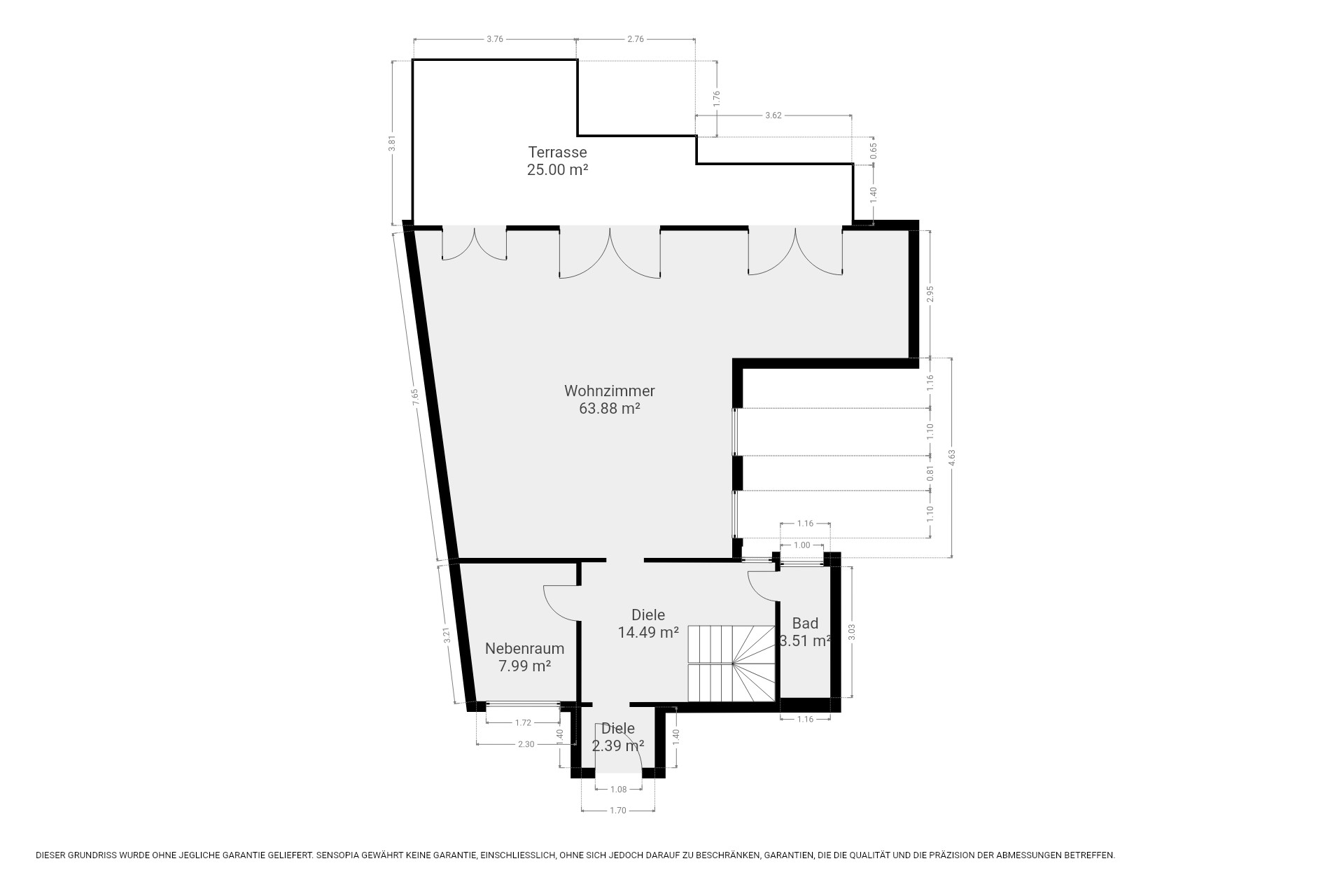 Die Einheit verfügt über eine Wohnfläche von ca. 172 m² sowie eine Terrasse mit ca. 25 m². Zur Wohnung gehört ein Kellerabteil mit ca. 21 m² und der rückwertige Garten.
