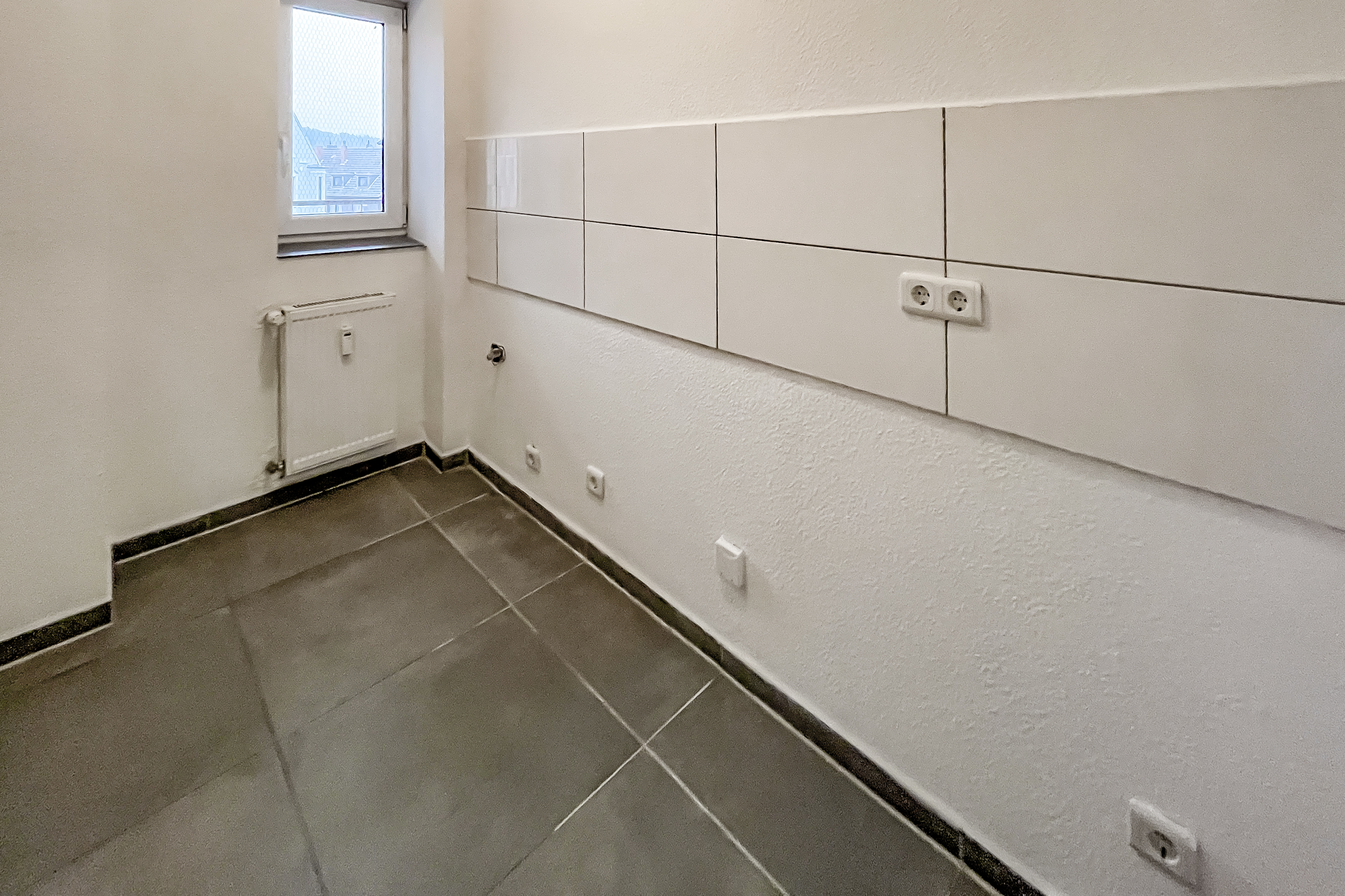 2,5-Zimmer-Wohnung befindet sich im 3.OG eines gepflegten Mehrfamilienhauses in Witten. Das Badezimmer ist mit einer Badewanne ausgestattet.